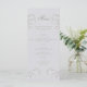 Um esboço falsa de alguns pedacinhos delicados de lírio das flores do vale decora esta lírio do vale, design de cardápio clássico e floral, simples mas sofisticado, eterno e elegante. Observe que o relevo é criado por meio de uma imagem e nenhum relevo real aparecerá no cartão. Este moderno cardápio clássico de casamento gravado em relevo é perfeito para casais que preferem artigos tradicionais formais de casamento e que amam o efeito gravado, temas florais, o lírio do tema do vale em particular e a caligrafia clássica de casamento.