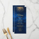 Este cardápio romântico celeste tem um esplash de confete de ouro num fundo azul do universo com estrelas. Você pode adicionar os detalhes do menu clicando no link personalizar. Isto é parte de uma bela suíte de casamento com cartas de números de mesas, cartões de lugar e muitos outros itens.