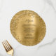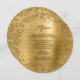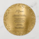 Uma borda circular de falsa brilho dourado contra um gráfico fino ouro metálico de folha metálica digital. Um design de texto de menu minimalista para o seu evento especial ou casamento. As impressões de brilho e folha de alumínio como uma foto nesses menus redondos.