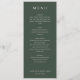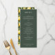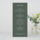 This elegant wedding menu design exudes a sophisticated and timeless charm with its clean, minimalist layout. The dark green background paired with crisp white typography creates an understated yet refined aesthetic, perfect for a classic or rustic-themed celebration. Each section is clearly delineated, guiding guests through the culinary journey with ease. Ideal for couples seeking a simple yet stylish presentation, this menu captures the essence of a memorable dining experience at their special event.