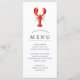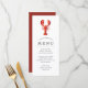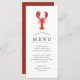 Cardápios personalizados de comida temática Lagosta Vermelha para o seu próximo Festa de Lagosta ou evento de frutos do mar. Ele apresenta uma ilustração em estilo aquarela de uma lagosta. Abaixo disso estão espaços para as informações do menu do seu evento.