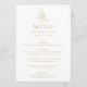 Projetado para coordenar com a nossa coleção de casamento Elegante da Lua Botânica e Estrelas, este menu boho mostra uma ilustração de arte de linha dourada de uma lua enfeitada com estrelas e folhagem contra um fundo branco. Personalize o menu de casamento da lua de ouro com seus nomes, data de casamento e ofertas de menus curados.