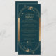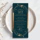 Cartões de aniversário de 30 anos de Cartões do Sol Dourado Celeste Verde Celestial, estrelas e sol ouro sobre fundo verde, com os detalhes do menu no centro em um roteiro de caligrafia dourada moderno. Personalize editando o texto nas caixas de texto fornecidas. Projetado para você pelo Evco Studio www.zazzle.com/store/evcostudio
