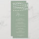 Adicione um sotaque balançoso à sua capa de tabela de eventos com este cartão de menu personalizável. Apresenta luzes brancas de fada branca e fada simples. Personalize adicionando seus detalhes. Esta placa de menu verde de sábio está disponível em outras cores. Os textos são perfeitamente editáveis para todos os efeitos.
