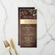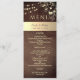 Traga calor e charme ao seu reception com este elegante cartão de menu de casamento de madeira rústica, apresentando delicados acentos florais dourados e luzes de corda cintilantes. Perfeito para casamentos românticos de outono ou inverno, este design adiciona um toque aconchegante e refinado à sua mesa. Personalize com suas seleções de menu e detalhes do casamento para criar uma experiência gastronômica memorável que seus convidados irão amar.