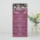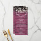 Com lindas luzes de corda e ilustrações desenhadas à mão de guirlanda floral rústica, personalize este menu sofisticado com as informações do cardápio do seu casamento em um fundo de painéis de madeira vermelha borgonha. Desenhado por Thisisnotme©