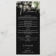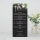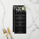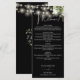 Este elegante menu de jantar de casamento com luzes de corda florais pretas e brancas pode ser personalizado com suas informações em tipografia elegante com suas iniciais monogramadas no verso. Projetado por Thisisnotme©