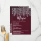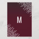 Elegantes, sofisticadas e glamourosas luzes pendentes de diamante branco sobre vermelho escarlate, cartões de menu para recepção de casamento. Este design clássico e sofisticado é perfeito para a recepção de casamento elegante, sofisticada e moderna. Personalize com o seu próprio menu na frente, juntamente com seus nomes e datas. Em seguida, personalize a parte de trás com a inicial do seu monograma. Todo o design de impressão de foto.