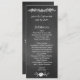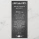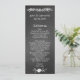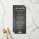 Menu longo e magro da mesa do casamento feito em um olhar na moda do quadro com as decorações florais brancas. O texto no branco está pronto para personalizar para serir suas necessidades da recepção de casamento. Adição bonita a sua recepção de casamento. Os produtos de harmonização estão disponíveis.