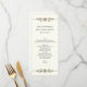 Menu longo e magro da mesa do casamento feito no creme com os gráficos elegantes de bandas goldtone da jóia, na parte superior e na parte inferior do menu. Personalize todo o texto para serir seu menu da recepção de casamento.