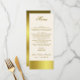Menu magro elegante da mesa da recepção de casamento, feito no marfim, com os gráficos da banda goldtone ao longo da parte inferior, e de cobrir a parte traseira. O texto feito sob encomenda feito em um marrom dourado está pronto para personalizar para sua recepção de casamento. Adição bonita a nosso grupo goldtone à moda do casamento.