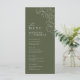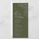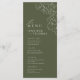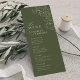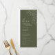 Ilustração delicada e elegante de flores desenhadas à mão e detalhes modernos de tipografia de scripts, em verde e branco escuro, simples e romântico. Menus de casamento floral de excelente para casamento rústico moderno, casamento de jardins de campo e casamento de boho simples no verão e no inverno. Totalmente personalizável com qualquer cor para corresponder ao seu tema de casamento. Veja todas as peças correspondentes na coleção.