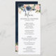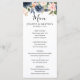 Belo carde cardápio de boho floral apresenta gráficos florais de cor d'água pintados manualmente / rosas em tons ricos de azul marinho e cor-de-rosa / pêssego e estilo encantador de letras de mão. Entre em contato comigo para obter ajuda sobre a personalização ou se você precisar de outro produto com este design.