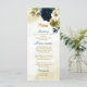 Lindas marinhos, marfim azul, flores brancas e douradas com cardápio de casamento de folhas douradas. São simulados os detalhes do brilho dourado. PARA MAIS PRODUTO CORRESPONDENTE, clique na coleção acima ou entre em contato comigo.