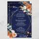 Laranja e rosas brancas sábio eucalipto verde marinho azul de fundo ouro geométrico quadro floral modelo com lista de bebidas no verso, se você não tiver bebida, pode utilizar para escrever programa, ou outra coisa, ou deixá-lo vazio.