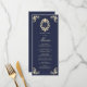 Elegante cardápio de casamento azul e barroco-marinho com um monograma vitoriano vintage, florescimento de ornamentados e sotaques clássicos de quadros. Perfeito para uma recepção de luxo, esse modelo de menu duplo exibe uma ordem refinada de cursos com estilo eterno. Coordena-se com o marinho barroco cheio e a suíte de convite para casamento de ouro para um olhar coeso e sofisticado.