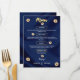 Menu Marinho Clássico Azul e Dourado Floral Elegante de