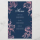 Design de "Programa de Festa de aniversário" elegante com Convênio Floral em Rosa Dourado com texto personalizado.