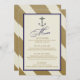 Este design de convite para o casamento na moda do The Spotted Olive™ apresenta um fundo dourado e listrado, ligeiramente curvado, uma imagem de vintage de uma âncora e a palavra "Menu" em um tipo de script elegante. Observe que a imagem de fundo está levemente intacta e as mazelas e imperfeições fazem parte do encanto deste design. Personalize facilmente este convite clicando no botão "personalizar". Copyright © 2014 The Spotted Olive. Todos os Direitos Reservados.