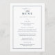 Este Menu de Casamento Elegante Clássico é simples e versátil. Ele apresenta um design branco e azul marinho com um monograma, detalhes de script, quadro simples e texto editável formal. Clique no botão editar para personalizar este design.