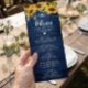 Marinho Rústico Azul Girassóis Flores de Corda Luzes de Casamento Cartão de Menu de Casamento. Para mais personalização, use a ferramenta design do Zazzle para modificar este modelo.