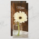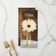 Personalize o elegante Mason jar e White Daisy Country Wedding Menu com os detalhes da refeição que você servirá no seu almoço informal de chá de panela, janto de recepção de casamentos ou brunch de casamento adicionando a salada ou primeiro curso, entrada ou segundo curso e sobremesa ou terceiro curso. Este charmoso menu rústico personalizado apresenta uma fotografia floral ligeiramente melhorada digitalmente de um pote de conservas de vidro cheio de uma flor margarida branca e de um fundo de madeira de celeiro marrom e curvada. Perfeito para o seu evento casual de celebração do celeiro.