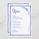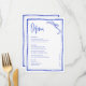 Menu Mesa de Casamento Francês Azul Escrito Manusc