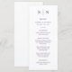 Estes elegantes e modernos cartões de cardápio de casamento ou cartões de menu de janto de ensaio apresentam um simples design de texto roxo escuro e branco que exumenta o estilo minimalista. Adicione suas iniciais ou monograma para torná-las completamente suas.