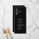 Este menu de casamento minimalista tem um layout tipográfico branco moderno em um fundo preto puro. Este design de classe é perfeito para qualquer tema de casamento em qualquer época do ano. Você pode personalizar completamente este menu indo para a opção personalizar. Isto é parte de uma suíte de casamento.