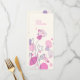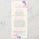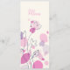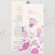 Menu de janto de recepção de casamento floral simples e de dois lados, estilo petal confetti, em tons bonito rosa, roxo, ameixa e marinho. Desenvolvido exclusivamente pela Sarah Trett.