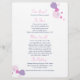Menu de janto de recepção de casamento floral simples e de dois lados, estilo petal confetti, em tons bonito rosa, roxo, ameixa e marinho. Desenvolvido exclusivamente por Sarah Trett. www.sarahtrett.com para www.mylittleedenweddings.com
