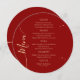 Mystical Dark Red Sun Moon Stars Space Wedding Cartões de Menu de Casamento com estrelas douradas simples sobre um fundo vermelho escuro com detalhes de menu no centro em um script de caligrafia dourada moderno. Personalize editando o texto nas caixas de texto fornecidas. Projetado pelo Evco Studio www.zazzle.com/store/evcostudio