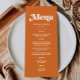 A adição perfeita à sua decoração de mesa de casamento. Ideal para um casamento retrógrado, este cardápio encapsula inspiração de casamento retrógrado com sua design de casamento inspirada nos anos 70. Quer você esteja planejando um casamento engraçado, um casamento eclético, ou um casamento de discoteca com um talento de casamento boho discoteca, este cardápio ajustado perfeitamente no seu tema de noiva. Perfeito para um casamento hippie, casamento tropical, casamento de verão, ou casamento outono, traz à vida casamentos laranja queimados. Complementa casamentos de vassoura, casamentos de vassouras ocidentais, e casamentos de boho no deserto, fazer que seja uma escolha versátil para todas as ideias de casamento outono.
