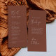 Este obrigado moderno de terracota, você e o cardápio de casamento é perfeito para um casamento simples. O design do boho do deserto apresenta uma tipografia rústica única e na moda boêmica em cor de ferrugem laranja queimada à terra. Personalize a placa de mesa com o menu na frente e um obrigado que você envia para seus convidados no verso.