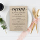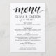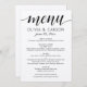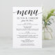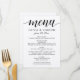 Papel kraft rústico moderno e chic e cartões de menu pretos apresentam um design tipográfico na moda preto com acentos de script de caligrafia e texto elegante personalizado que pode ser personalizado com seus deliciosos detalhes de menu de janto e um monograma dos nomes de noiva e noivo e data de casamento.