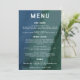 Elementos: fundo abstrato de lavagem aquarela. Nomes e detalhes aparecem em fontes modernas sem serifa. A parte traseira apresenta foto e código QR RSVP. Cores: azul, verde, esmeralda, oceano, verde marinho, azul marinho, azul real, azul celeste. Temas: moderno, minimalista, contemporâneo, tons de joia. Coleção: Coleção de Casamento de Fotos Modernas Minimalistas Azul Teal. Tipo de Produto: Menu