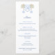 Design de menu em azul claro e azul escuro (com sotaques laranja fornecidos pelas minhas próprias ilustrações de cor d'água de uma laranja estilizada). O padrão no verso foi criado digitalmente por mim. A letra do monograma na crista pode ser a primeira letra do nome da família ou o primeiro nome da honestidade (você também pode acessar a ferramenta design e apagar tudo para deixar a(s) árvore(s). Você também pode alterar a cor do contraste no verso (atualmente um verde-claro) alterando a cor do plano de fundo no verso.