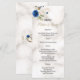 Menu Monograma de casamento de flores azuis douradas ca