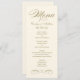 Cartões de menu de janto de casamento elegantes e formais apresentam um script de na moda e detalhes de rolagem com um design de inspiração vintage. Iva e ouro antigo. Personalize o monograma personalizado com os nomes da noiva e do noivo, a data do evento e os detalhes do menu.