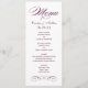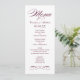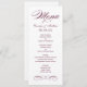 Cartões de menu de janto de casamento elegantes e formais apresentam um script de na moda e detalhes de rolagem com um design de inspiração vintage. Vinho borgonhado tinto e branco. Personalize o monograma personalizado com os nomes da noiva e do noivo, a data do evento e os detalhes do menu. A cor do texto e do plano de fundo pode ser modificada para coordenar com o esquema de cor do casamento.