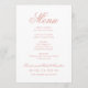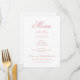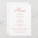 O cartão de cardápio de ouro de rosa formal, design, apresenta uma bela tipografia que combina um roteiro de caligrafia tradicional com carateres clássicos de blocos em um fundo branco limpo. Inclui um sotaque de design de rolagem decorativo. O texto personalizado pode ser personalizado com um monograma dos nomes da noiva e noiva e da data do casamento, bem como os detalhes do menu janto para o dia do casamento. Por favor, compre nossa Coleção de Casamentos Dourados Elegante Clássico para coordenar designs.