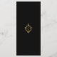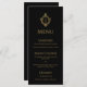 Um menu elegante com ar vintage, recomendado para um casamento com cores de casamento preto e dourado. Acima do texto, há um monograma numa crista de ouro falso vintage. O título "Menu" e as legendas são escritas em bonés. Todo texto pode ser personalizado e tem uma cor de ouro semelhante à crista dourada. O fundo é preto. No verso, há o mesmo monograma em crista. O monograma é formado por duas iniciais separadas por uma fina linha. A crista floral vintage é de uma antiga ligação ao cobrir, do livro "Rust, Smut Mildew & Mold", de 1870, agora no dominio público.