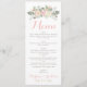 Menu Monograma de Casamento Floral Boho Rosa e Dourado