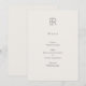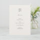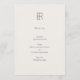 Cardápio de casamento minimalista moderno com um elegante monograma entrelaçado e tipografia limpa e refinada. Projetado para casamentos no cartório, casamentos civis, fuga e casamentos contemporâneos, este cardápio de casamento apresenta os pratos com clareza e sofisticação discreta.