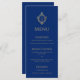 Menu Monograma Real Blue Faux Gold Foil Crest Casamento