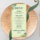 Traga um pouco de elegância para o seu dia especial com as nossas maravilhosas cartas de cardápio de casamento. Adorados com belos suculentos de aquarela e uma estrutura decorativa de ouro, estes convites modernos combinam caligrafia de tendências com elementos tradicionais, fazer-os uma escolha perfeita para qualquer casal que comemore seu casamento de primavera ou verão.