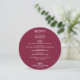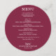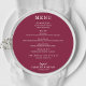 Uma placa de menu redonda jantada em framboesa (ou qualquer cor) e a letra chic em branco mostra as opções de menu. Perfeito para uma festa de Natal de feriado ou qualquer evento especial com um menu de janto. Escolha QUALQUER FUNDO DE COR, qualquer texto de COR, qualquer letra! Personalize facilmente com o menu e os detalhes do seu janto.