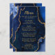 Create a striking presentation with this navy blue and gold agate marble menu, perfect for wedding receptions and versatile enough for stylish multi-purpose use. Deep midnight blue tones, organic stone-inspired textures, and shimmering gold accents come together to create a refined yet dramatic look that pairs beautifully with fall or winter celebrations. Designed to complement elegant, modern, and glamorous events, this agate-inspired menu can be customized for wedding dinners, cocktail hours, dessert tables, or upscale event and restaurant menus, offering timeless sophistication that extends well beyond the wedding day.