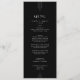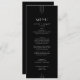 Este elegante menu de casamento preto da Everly Collection apresenta tipo branco nítido, sotaques de deco de arte geométrica e espaçamento editorial. Os simples e finos motivos triplos enquadram um texto elegante para um olhar refinado, moderno e minimalista, pronto para a noite. Este menu de janto pode ser usado para recepção de casamento, janto de ensaio ou qualquer evento.