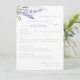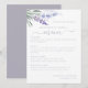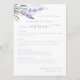Cardápio de casamento elegante e rústico em aquarela roxa e azul com tipografia clássica e cursiva de lavanda.